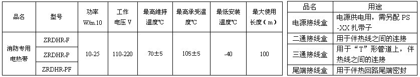 消防專用電熱帶規(guī)格型號(hào):